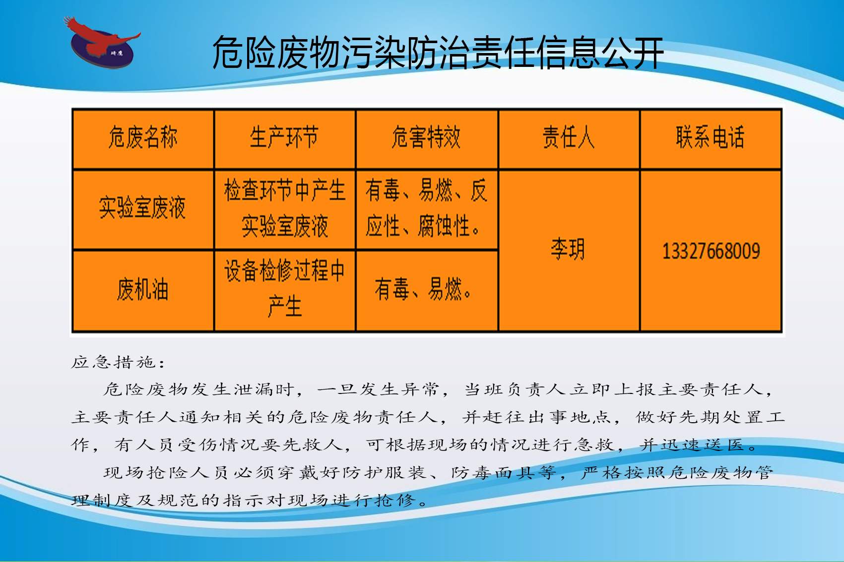 危險(xiǎn)廢物發(fā)生泄漏時(shí),一旦發(fā)生異常,當(dāng)班負(fù)責(zé)人立即上報(bào)主要責(zé)任人主要責(zé)任人通知相關(guān)的危險(xiǎn)廢物責(zé)任人,并趕往出事地點(diǎn),做好先期處置工作,有人員受傷情況要先救人,可根據(jù)現(xiàn)場的情況進(jìn)行急救,并迅速送醫(yī)現(xiàn)場搶險(xiǎn)人員必須穿戴好防護(hù)服裝、防毒面具等,嚴(yán)格按照危險(xiǎn)廢物管理制度及規(guī)范的指示對現(xiàn)場進(jìn)行搶修。